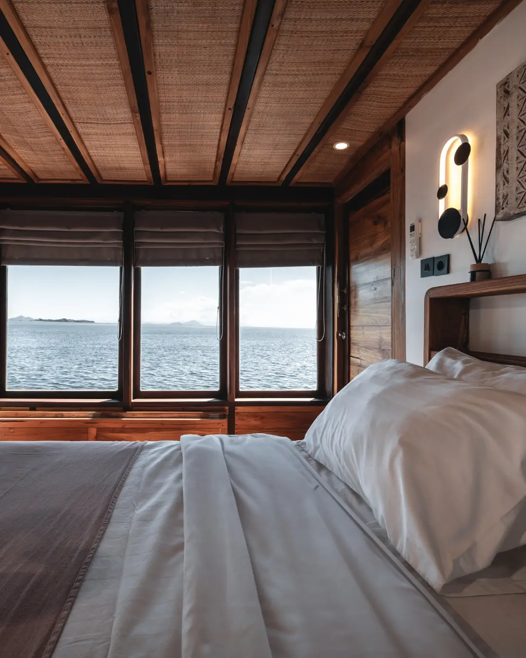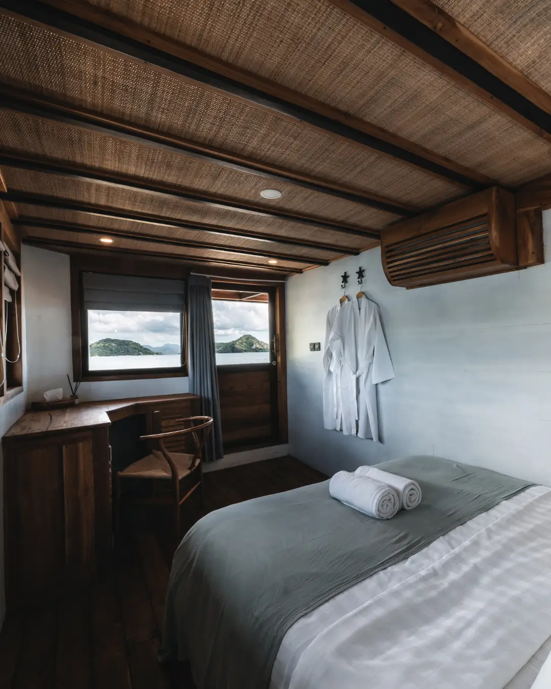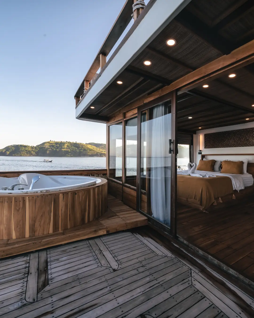 Open Trip Sailing Komodo 3D2N (Liveaboard). Highlight: cabin ber-AC, full board meals, snack + minuman, snorkeling gear + life jacket, transfer in/out, guide + dokumentasi. Catatan: jadwal/destinasi bisa berubah. Extra highlight: suasana boutique untuk group kecil, banyak lounge area, sky deck, Wi-Fi, paddleboard & canoe.