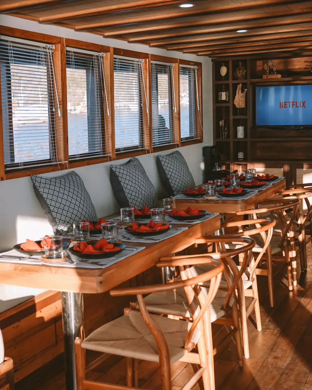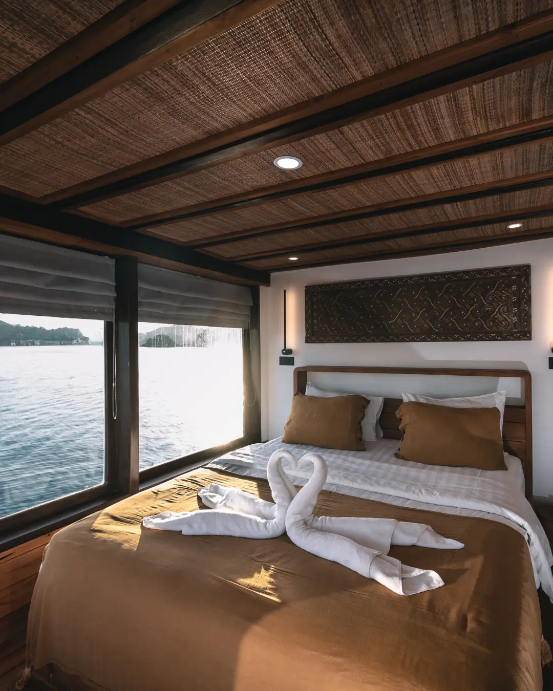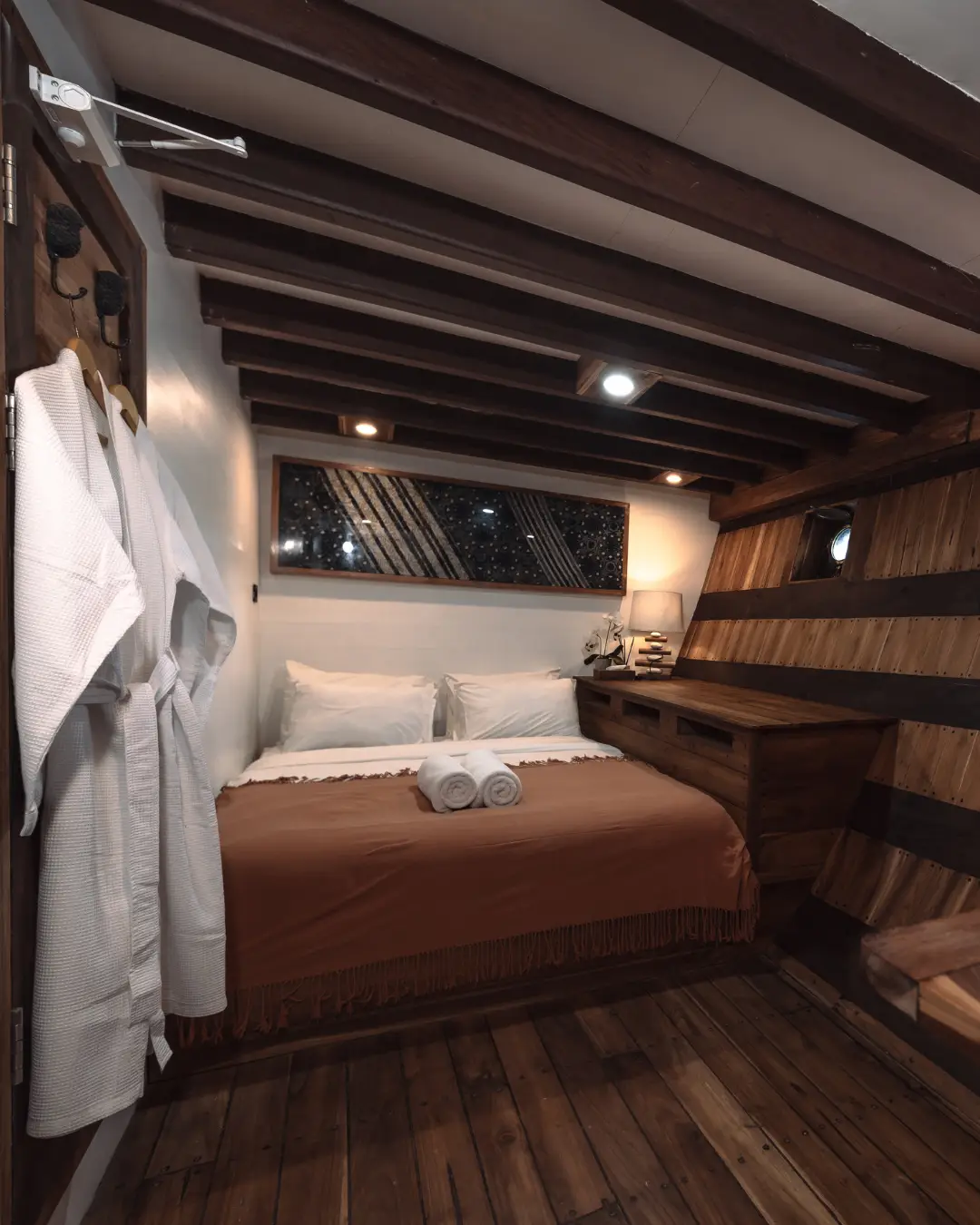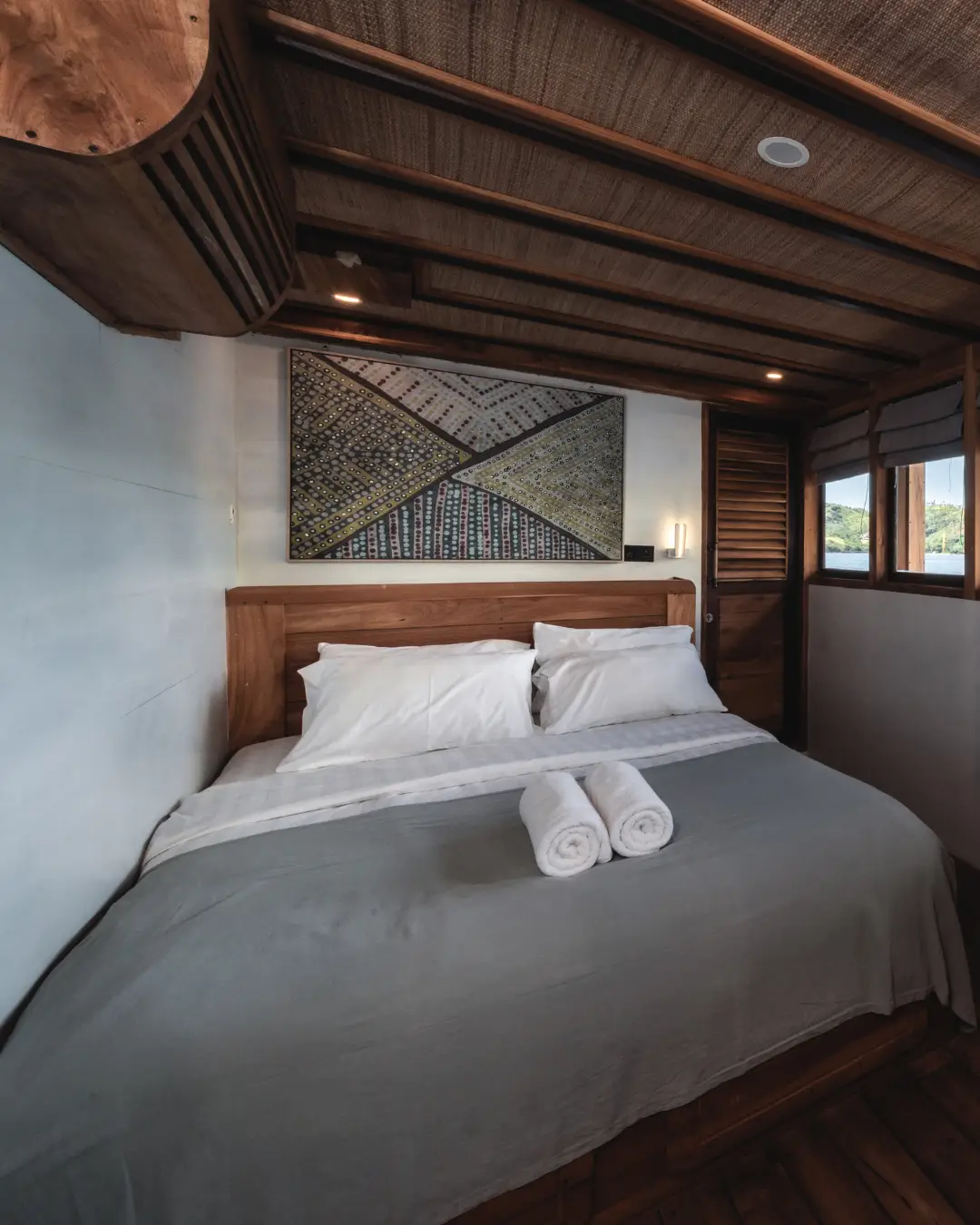 Open Trip Sailing Komodo 3D2N (Liveaboard). Highlight: cabin ber-AC, full board meals, snack + minuman, snorkeling gear + life jacket, transfer in/out, guide + dokumentasi. Catatan: jadwal/destinasi bisa berubah. Extra highlight: suasana boutique untuk group kecil, banyak lounge area, sky deck, Wi-Fi, paddleboard & canoe.
