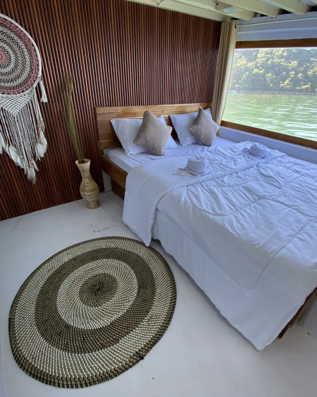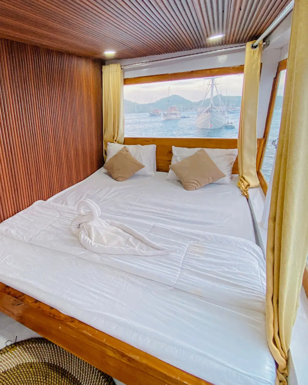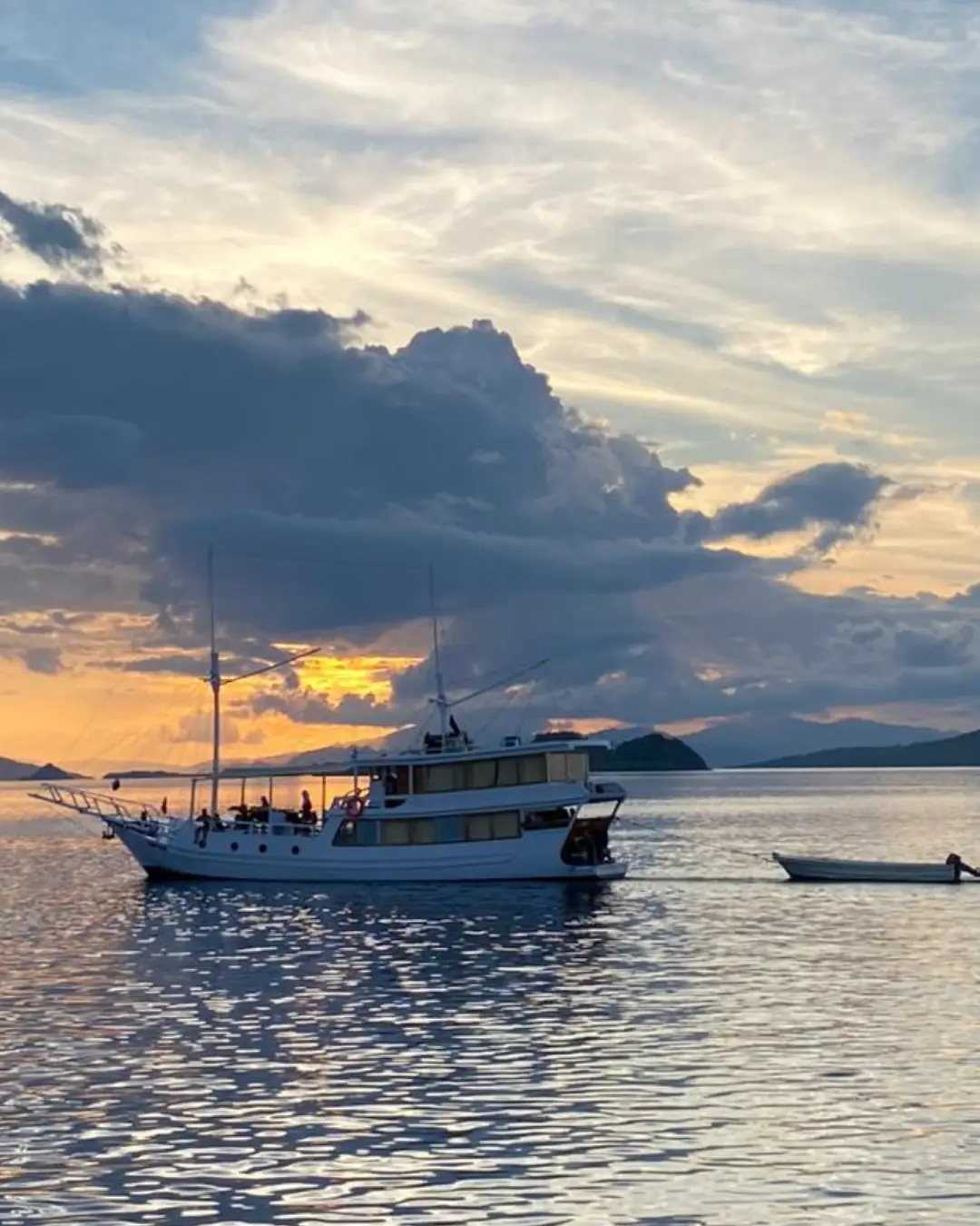 Open Trip Sailing Komodo 3D2N (Liveaboard). Highlight: cabin ber-AC, full board meals, snack + minuman, snorkeling gear + life jacket, transfer in/out, guide + dokumentasi. Catatan: jadwal/destinasi bisa berubah. Extra highlight: sundeck untuk chill, Wi-Fi, paddle board, dan area lounge.