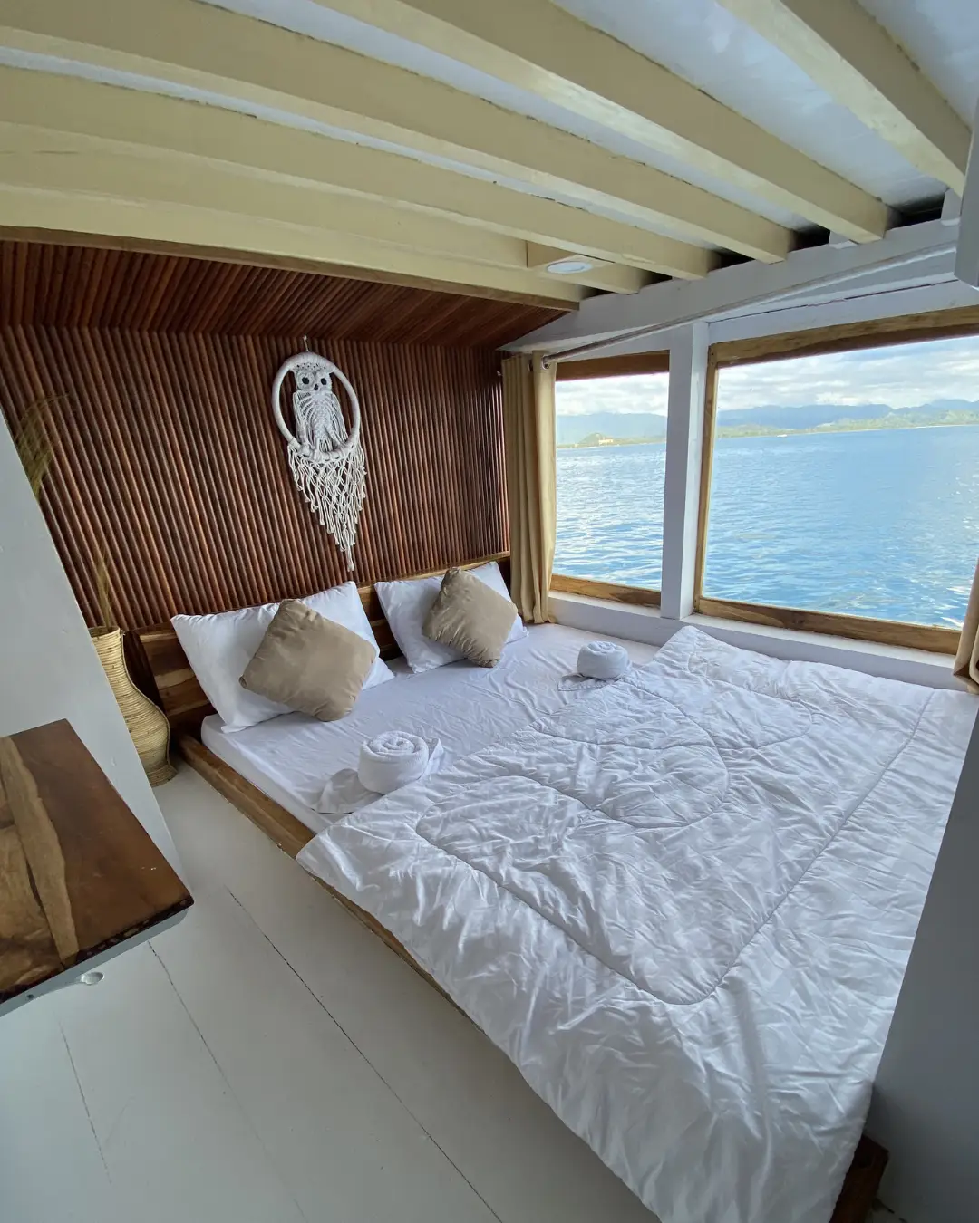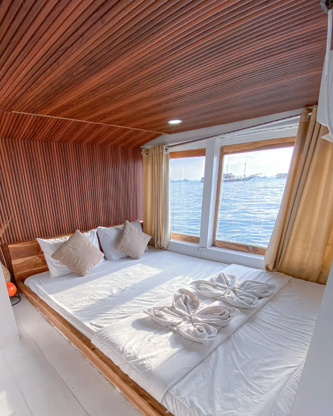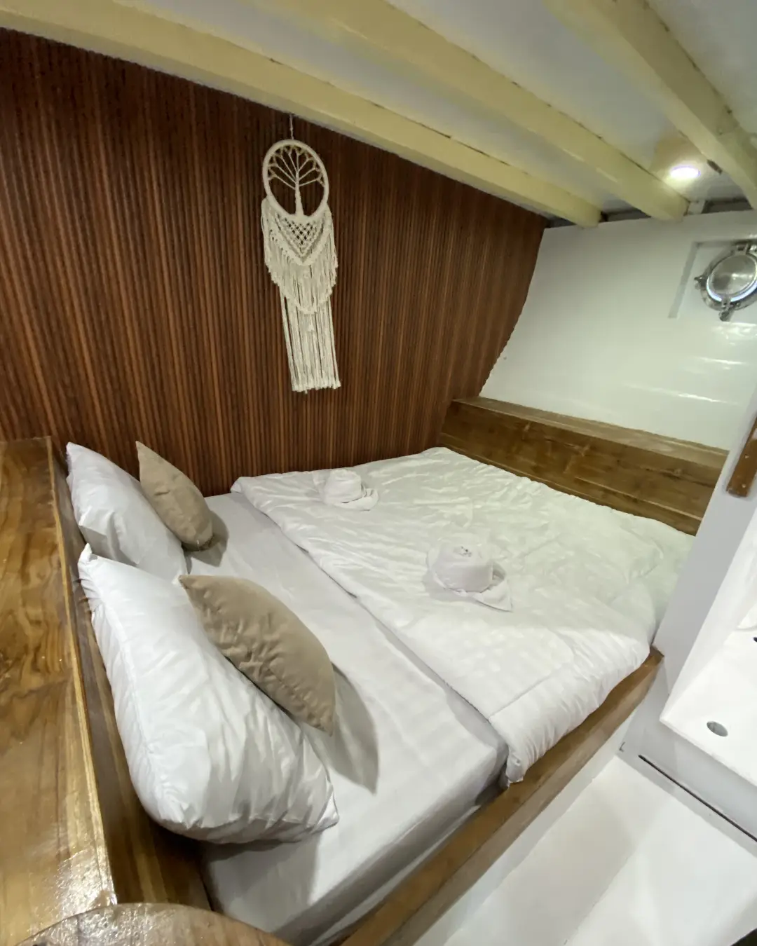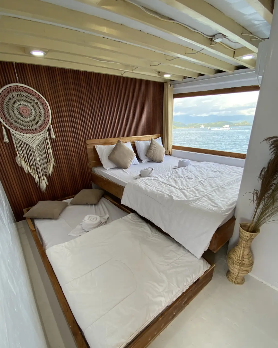 Open Trip Sailing Komodo 3D2N (Liveaboard). Highlight: cabin ber-AC, full board meals, snack + minuman, snorkeling gear + life jacket, transfer in/out, guide + dokumentasi. Catatan: jadwal/destinasi bisa berubah. Extra highlight: sundeck untuk chill, Wi-Fi, paddle board, dan area lounge.