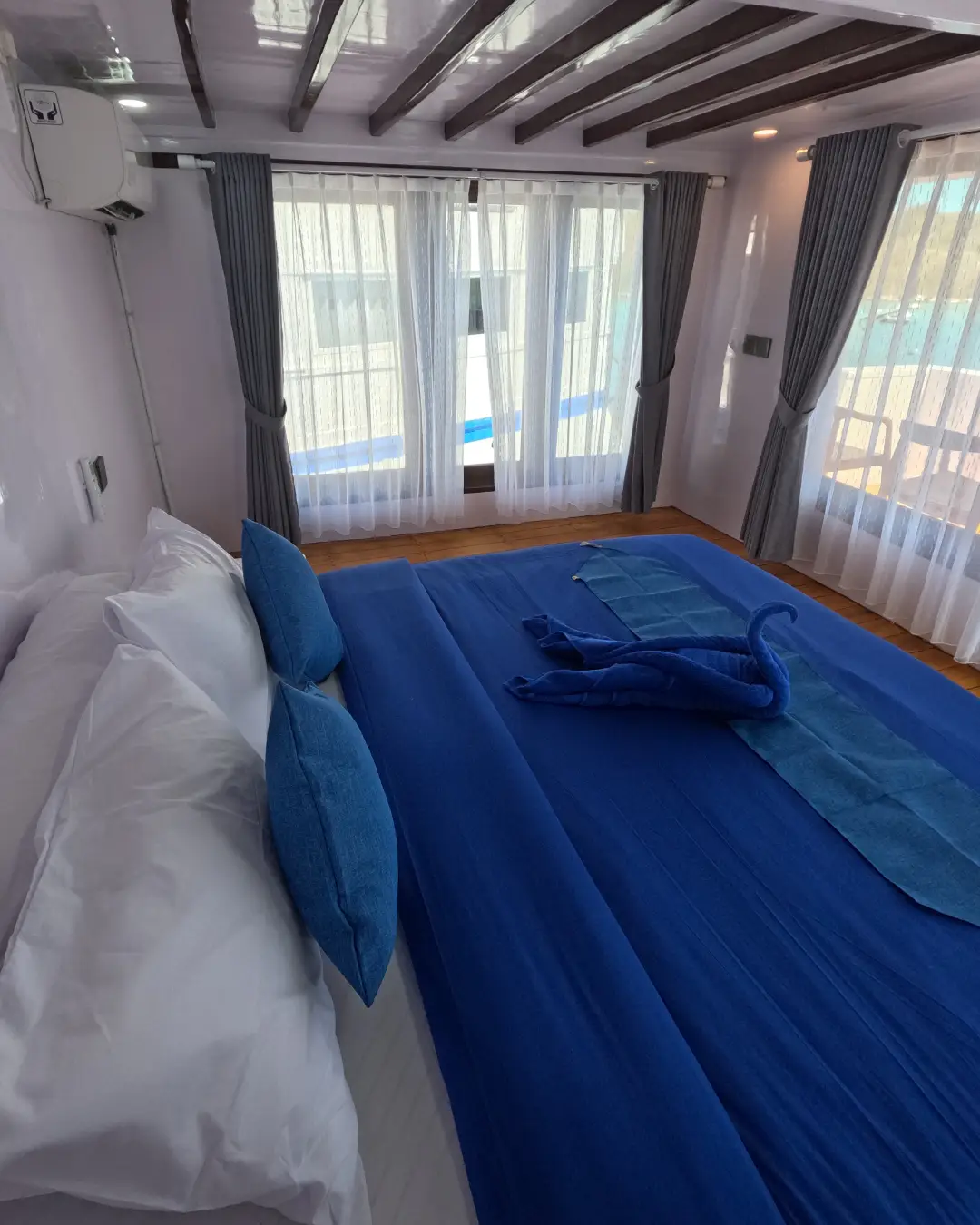 Open Trip Sailing Komodo 3D2N (Liveaboard). Highlight: cabin ber-AC, full board meals, snack + minuman, snorkeling gear + life jacket, transfer in/out, guide + dokumentasi. Catatan: jadwal/destinasi bisa berubah. Extra highlight: indoor AC dining, sundeck, Wi-Fi, canoes & snorkeling equipments.